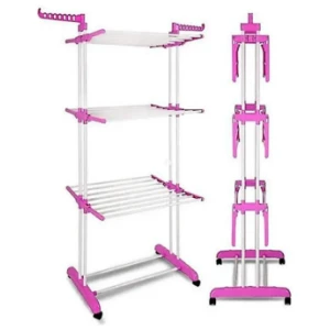 رف تجفيف الملابس من ثلاثة مستويات – أبيض/وردي