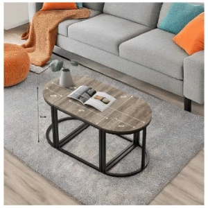 طاولة غرفة معيشة عصرية مع طاولتين جانبيتين، طاولة مركزية صغيرة بإطار معدني للمنزل والمكتب والشرفة
