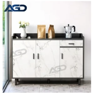 خزانة قهوة جانبية عصرية للفنادق والمنازل مع أرفف مغلقة ودرج تخزين وسطح خشبي متين لغرفة المعيشة والمطبخ