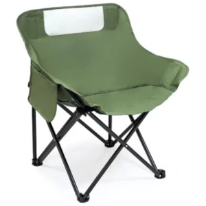 كرسي قابل للطي مناسب للتخييم والشاطئ وصيد الأسماك والنزهات، قماش أكسفورد مع جيوب تخزين جانبية – أخضر