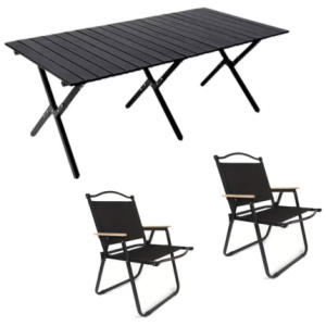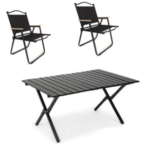 مجموعة طاولة وكرسيان، قابلة للطي للتخييم، والنزهات والسفر والشاطيء والشواء