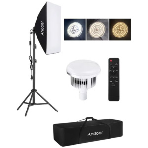 طقم إضاءة سوفت بوكس للتصوير الفوتوغرافي مع مصباح ليد ثلاثي اللون، وجهاز تحكم عن بعد وحقيبة حمل