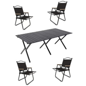 مجموعة مكونة من طاولة و4 كراسي، قابلة للطي، للاستمتاع بنزهة ممتعة خارج المنزل