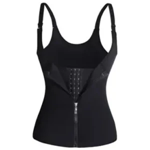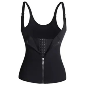 مشد تنحيف الخصر المصنوع من مادة النيوبرين الساخن للنساء، حزام تشكيل الجسم ومشد بالحمالات (إغلاقين) – أسود L