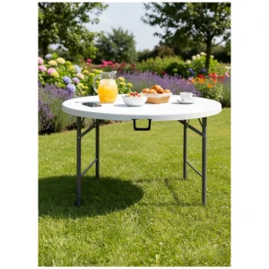 طاولة ذات سطح مستدير محمولة وقابلة للطي ، بإطار فولاذي للتخييم والأنشطة الخارجية 122*122*74 سم/ أبيض