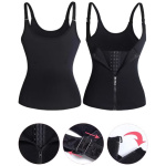 مشد تنحيف الخصر المصنوع من مادة النيوبرين الساخن للنساء، حزام تشكيل الجسم ومشد بالحمالات (إغلاقين) – أسود M